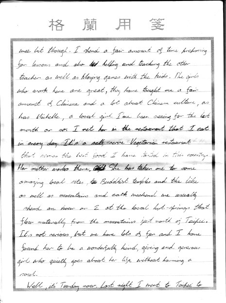 The parcel contained late Christmas presents: a beautiful Chinese style silk jacket for his mother and an intricate wooden Ganesh carving for his father. Both greatly appreciated. He also enclosed photos and this wonderful letter (undated) . . .